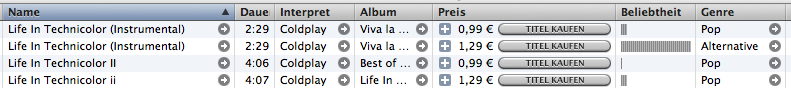 Grade habe ich ein bissel im iTunes-Store gestöbert und nach Coldplay gesucht (ja, genau die, die ihr gerade aktuelles Album gegen Abgabe einer eMail-Adresse verschenken).