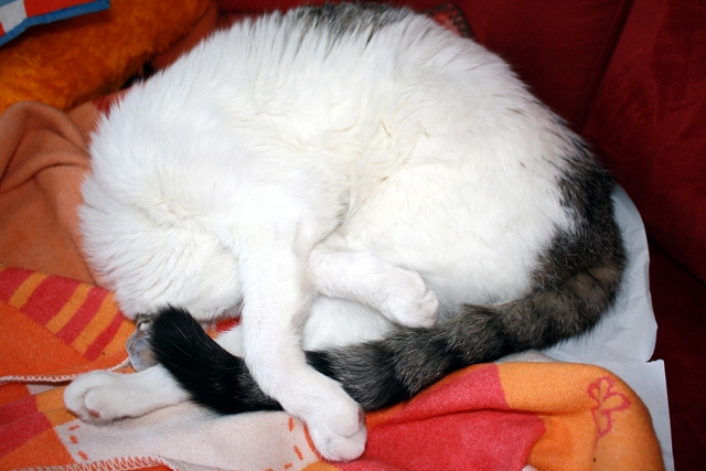 Bildbeschreibung: Linkerhand sieht der geneigte Besucher eine aktuelle Aufnahme unseres Katers Gismo und rechts einen Baum, dem schon seit einer Weile ein Ast fehlt. (Wie immer gibt’s beide Bilder mit Klick drauf auch in größer.)