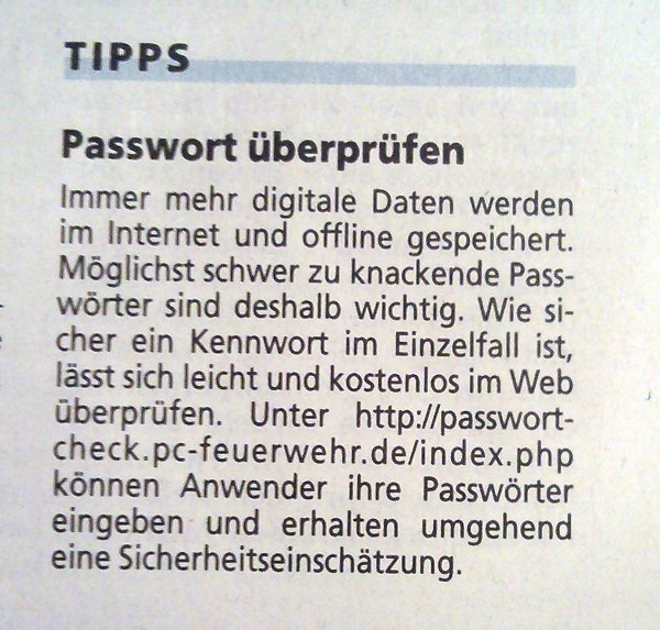 Aber wie dann der Redakteur auf die Idee kommt, seine Leser auf eine noch nichteinmal SSL-verschlüsselte Webseite zu schicken, um dort die Passworte auf Sicherheit überprüfen zu lassen?!?