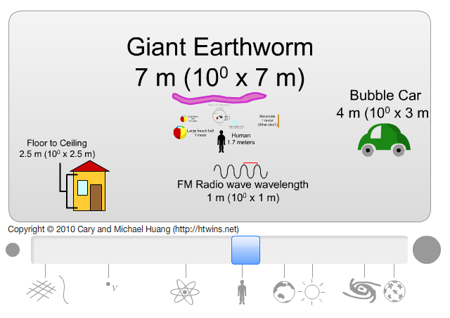 Auf http://htwins.net/scale/index.html gibt es eine interaktive Flash-Animation (Sorry, iOS-User!), die die aktuell der Menschheit bekannten Größenverhältnisse per Schieberegler visualisiert und sehr anschaulich in Relation setzt, vom angenommenen Durchmesser des Universums bis runter zur Planck-Länge.