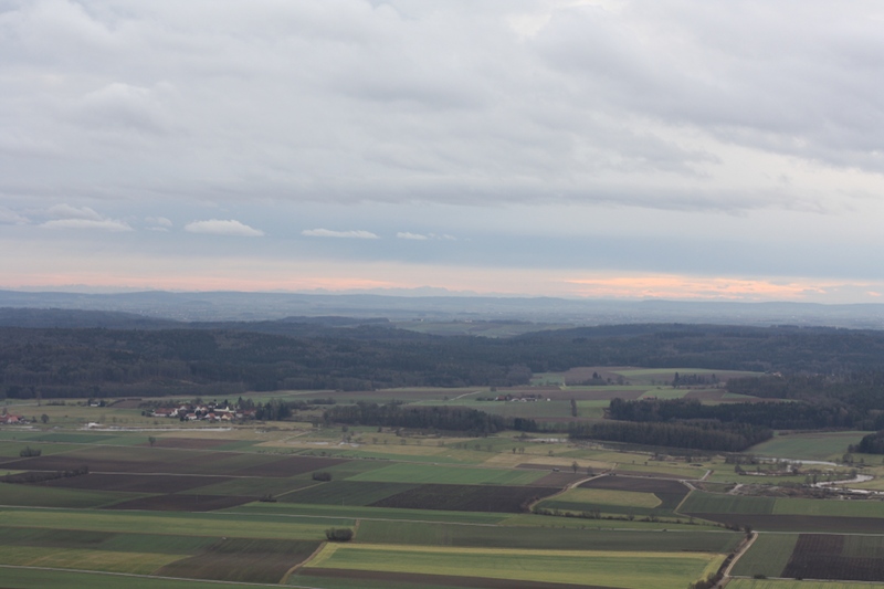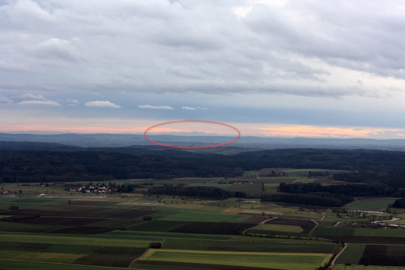 Plötzlich kam ein Mann mit ordentlich Speed mit seinem Offroad-Vehikel den Buckel hochgefahren, hat direkt neben uns hingeparkt, ist den kleinen Gipfel vor der Osterwiese hochgespurtet bis neben mich und meinte, dass er gehört habe, heute könne man die Alpen sehen.