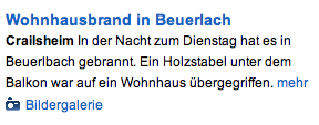 Es fängt ja schon mit der Überschrift an: “Beuerlach” findet noch nichtmal Google Earth, “Beuerlbach” hingegen sehr wohl. Zum zweiten Satz des Teasers lehne ich mich mal sehr weit aus dem Fenster und behaupte, dass auch wenn das mit der neuen Rechtschreibung nicht so 100% trivial ist, immer noch mit “P” gestapelt wird. Da spielt es dann fast keine Rolle mehr, wenn der “Stabel” dann auf ein Wohnhaus losgeht.