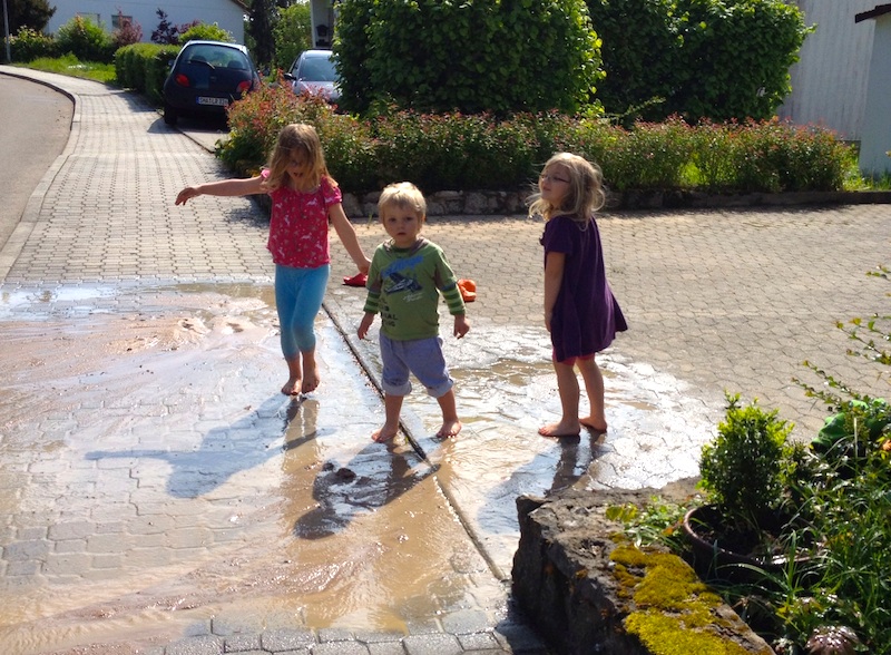 Diese Reihenfolge ist ziemlich wichtig, weil wenn die SOKO “Rohrbruch” eintrifft, bevor die Kids planschen durften, ist die Stimmung im Keller. Zugegeben, ich habe das falschrum gemacht, aber da die Anfahrt des diensthabenden Wasserwärters (an dieser Stelle einen herzlichen Gruß an den Franz, der uns sehr viel beigebracht hat!) ein wenig länger war, hat das dann doch wieder gepasst.