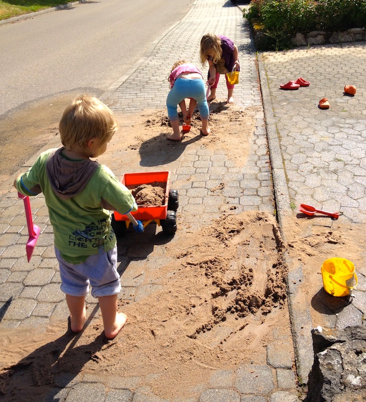 Also konnten die Kids erst noch kräftig planschen, während ich in der Garageneinfahrt erstmal ein paar Sessel hingestellt habe: