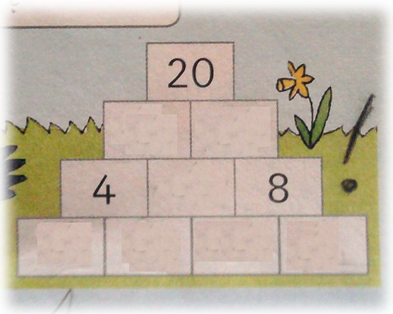 - also muss die mittlere Zahl (20 - 4 - 8) / 2 sein, also 4.