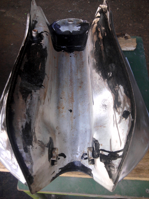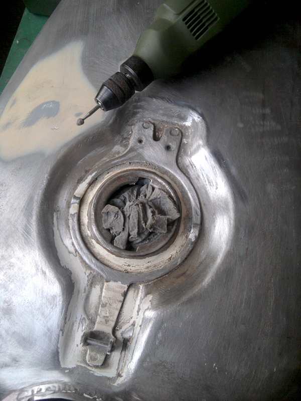 Aber nach nur einigen wenigen Stunden meditativen Schleifens hatte ich auch auf der Unterseite des Tanks deutlich sichtbare Ergebnisse:
