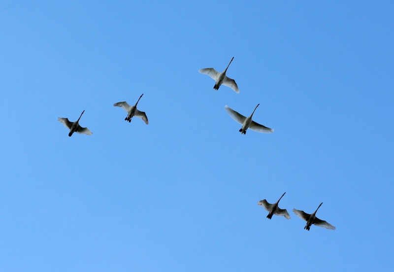 Als wir so liefen, kam auf einmal eine kleine Gruppe von Schwänen vorbei. Das Geräusch, das die beim Fliegen machen, muss man einfach mal gehört haben, einfach irre.