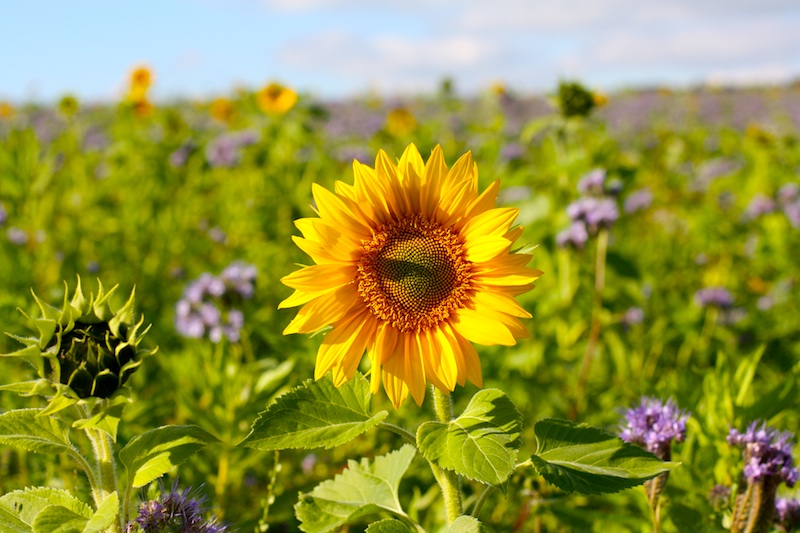 Auf einigen Feldern haben die Bauern Blumen ausgesät, die vor dem Winter vermutlich noch untergeackert und so zu Dünger werden.