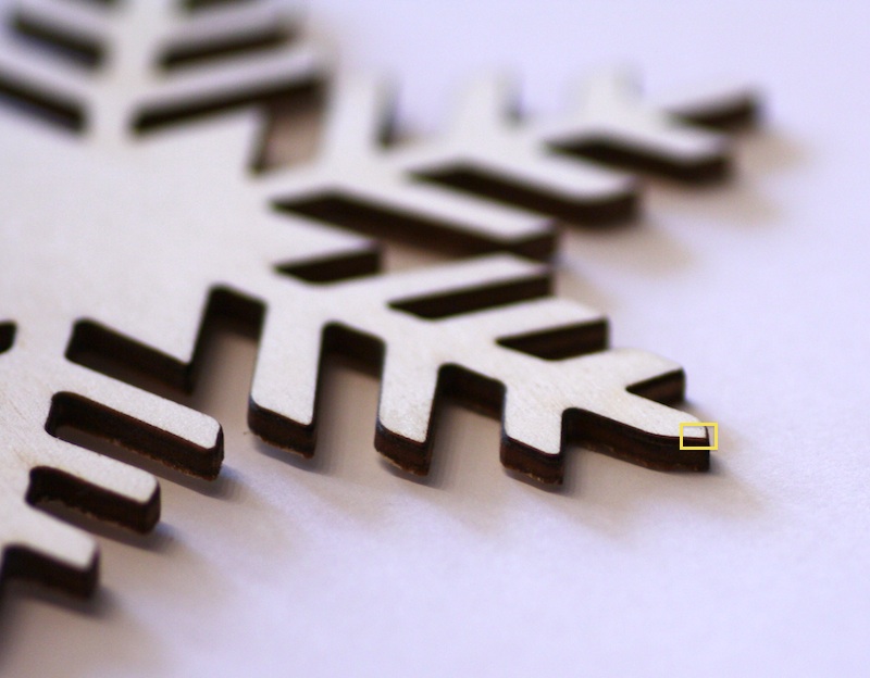 In dem oberen Foto seht ihr die Kante (also den Übergang von Waagerecht zu Senkrecht) im Detail; der Laser macht die senkrechten “etwas dunkler” als von “normalen” Laubsägearbeiten her gewohnt.
