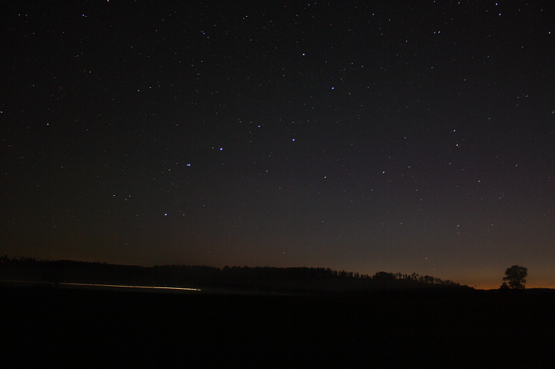 Einen hab ich noch, nämlich den Großen Wagen (korrektes Spanisch wäre “la Osa Mayor”, ich hab in der Überschrift spaßeshalber und äußerst unkorrekt ein “großes Auto” daraus gemacht). Auf dem Foto sieht man trotz insgesamt nicht sehr schöner Schärfe (wir berichteten …) sogar den Reiter auf dem Knick der Deichsel, der gern mal als Sehtest angeführt wird.