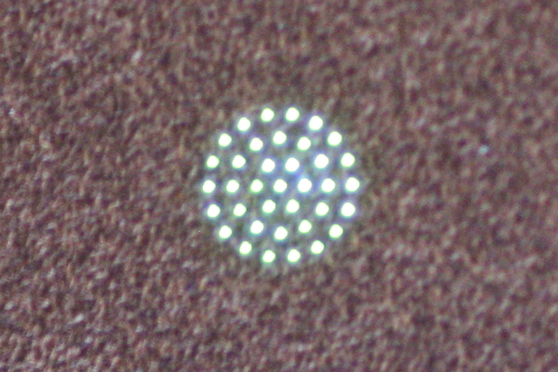 “Mikro” heißt in diesem Fall, dass die Löcher eine ähnliche Größenordnung besitzen wie die Rauhigkeit des Materials. Wenn die LED aus ist, sieht man die Löcher deshalb nicht.