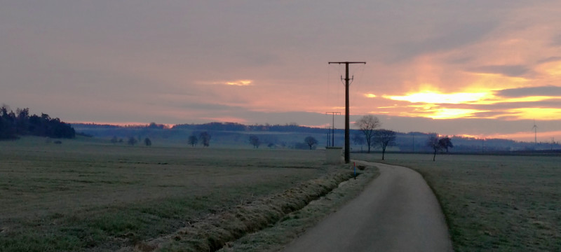 Mir geht’s bei diesem Foto um den weißgrauen Streifen, der sich in der Bildmitte unterhalb der Bäume rumtreibt. So eine Art Hochnebel oder Hangnebel. Aus den Tropen kenne ich Nebelwälder, aber dass der Nebel auch in Kreßberg seltsame Dinge macht, war mir neu.