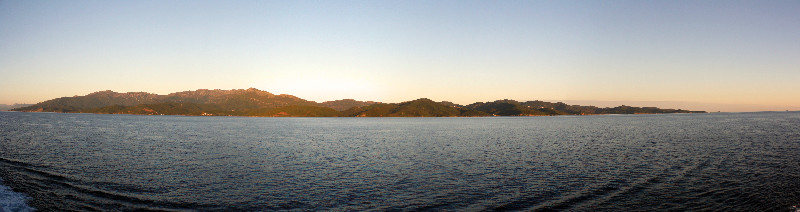 Wenn man dann morgens die Kamera über die Reling hebt und einfach dumm ein paar mal auf den Auslöser drückt, kann man auf den geschossenen Fotos beispielsweise sowas sehen, nämlich die Nordspitze von Korsika: