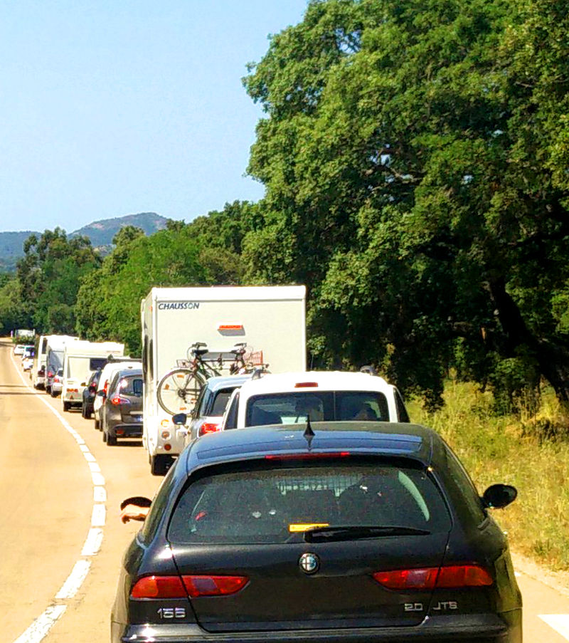 Zugegeben, das Bild hier unten ist eins aus dem letzten Urlaub (sorry, Frau Spätlese!), aber man erkennt darauf hoffentlich, dass hier viele Autos hintereinander stehen.