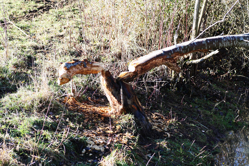 Erster Stop: gleich unten am Brühlbach machen die Biber nun schon selbst ihre eigene Biberkunst: