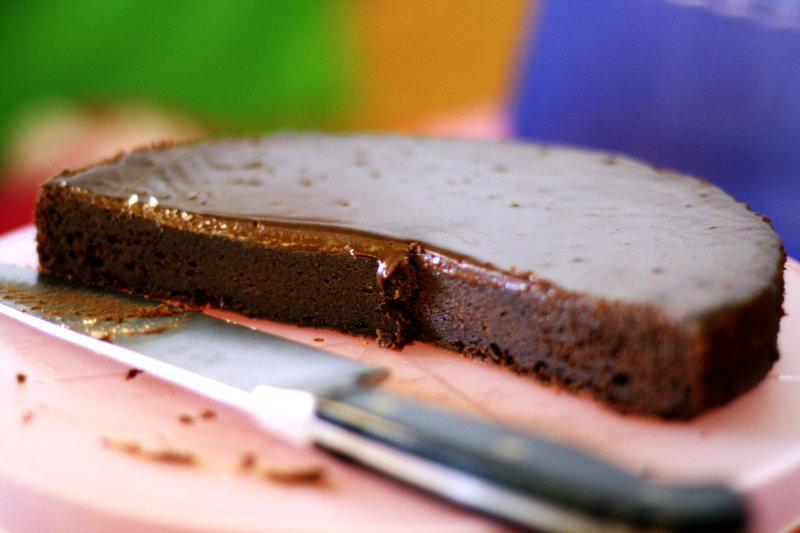 Natürlich nicht ganz grundlos, denn zum Einen hab ich den Kuchen höchstselbst gebacken und zum Anderen besteht der quasi aus nichts anderem als Butter, Schokolade und Zucker …