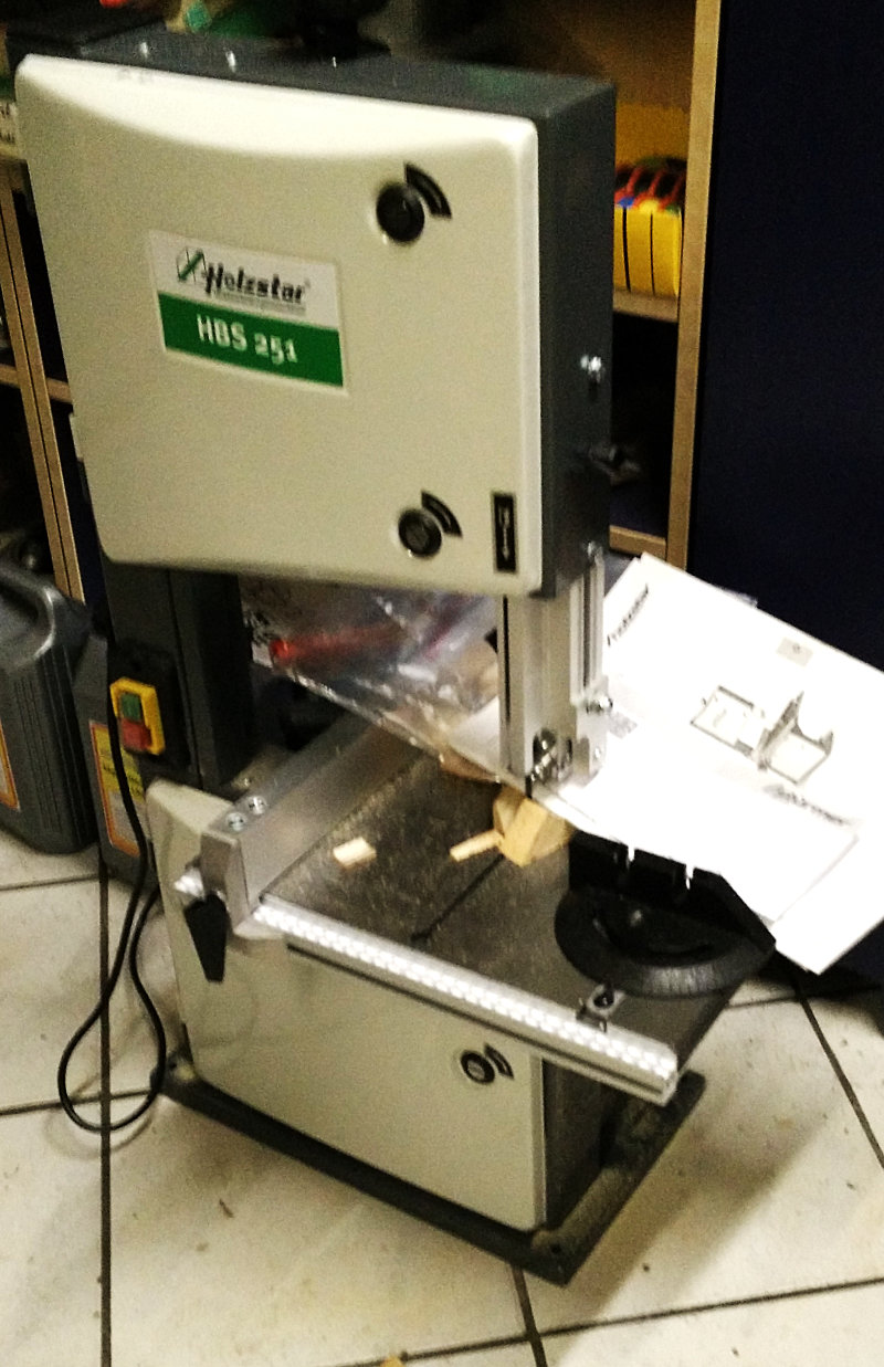 Ich habe mir (wie neulich schon angekündigt) eine kleine Bandsäge geschenkt, eine Holzstar HBS 251. Inzwischen wohnt das Gerät auch schon eine Weile bei mir, und ich habe so ein paar Dinge gelernt und gebastelt.