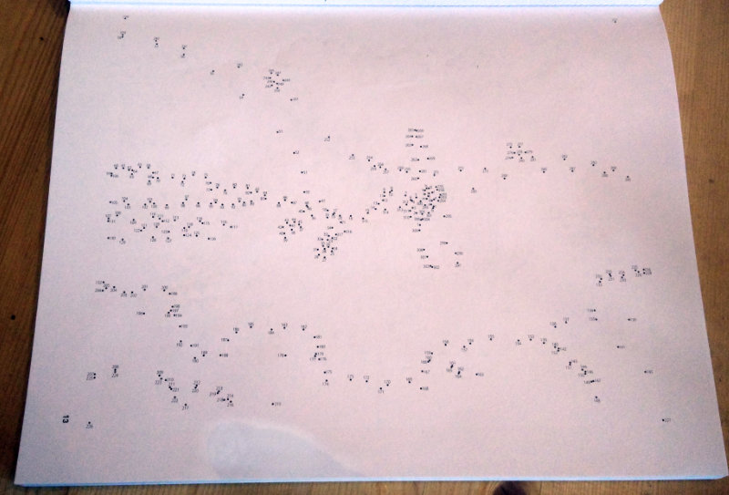 Solche Dinger gibt’s in verschiedenen Varianten, vom echten Ausmalen über Mandala-Malen bis hin zu der Variante, die ich mir geholt habe: Punkte verbinden. Der Klassiker, bekannt aus vielen Kinderrätseln. Im Unterschied zu den Kinderrätseln sind die Zahlen aber sehr klein gedruckt und es sind auch sehr viele (300 und mehr).