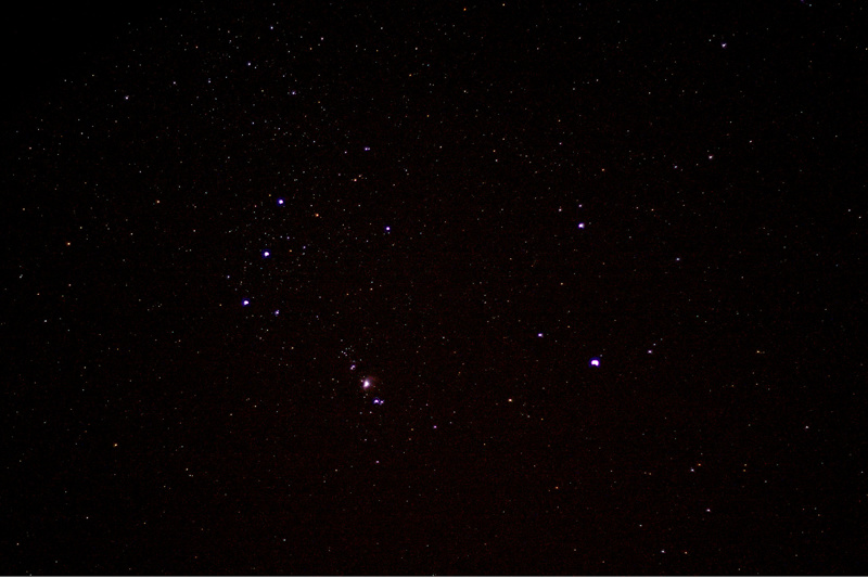 Wir sehen in der Bildmitte links den Gürtel des Orion.