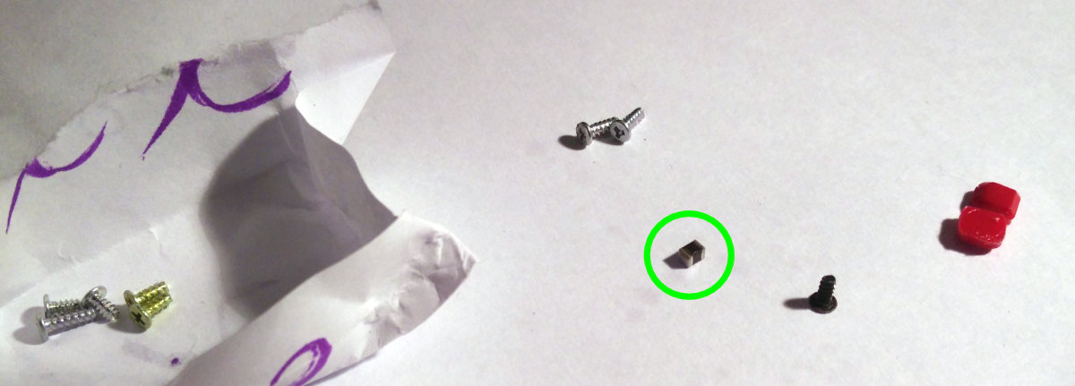 Auf diesem Foto sieht man auch, was da im Gehäuse gerasselt hat. Ein SMD-Bauteil ohne sichtbare Kennzeichnung.