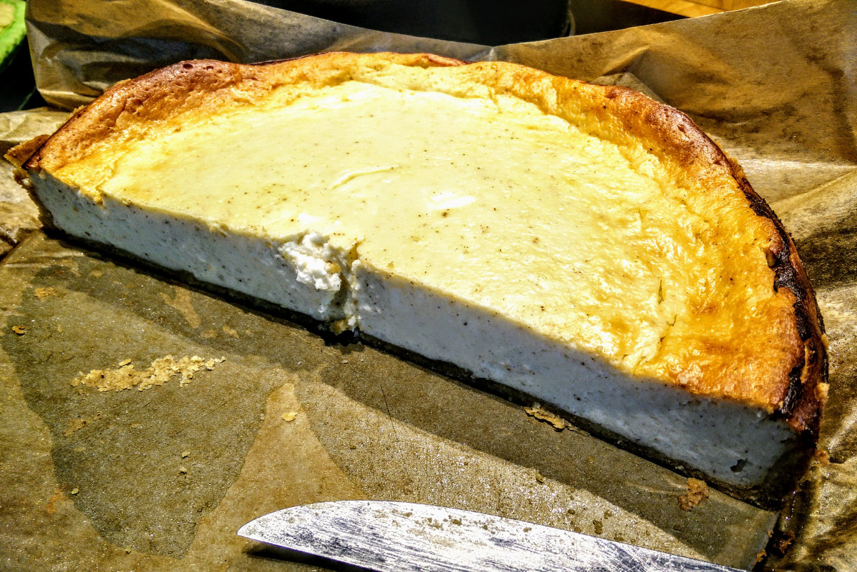 Nun den Teig wieder aus dem Kühlschrank holen. In einer gut gefetteten Springform dünn verteilen (nur zwei bis drei Millimeter dick) und die Ränder so weit als möglich nach oben ziehen. Die Füllung reinleeren und ab damit bei 180°C Ober-/Unterhitze für eine gute Stunde in den Backofen. Bei Umluft ein wenig kühler und/oder kürzer. Auf jeden Fall sollte die Füllung oben drauf schön goldbraun werden.
