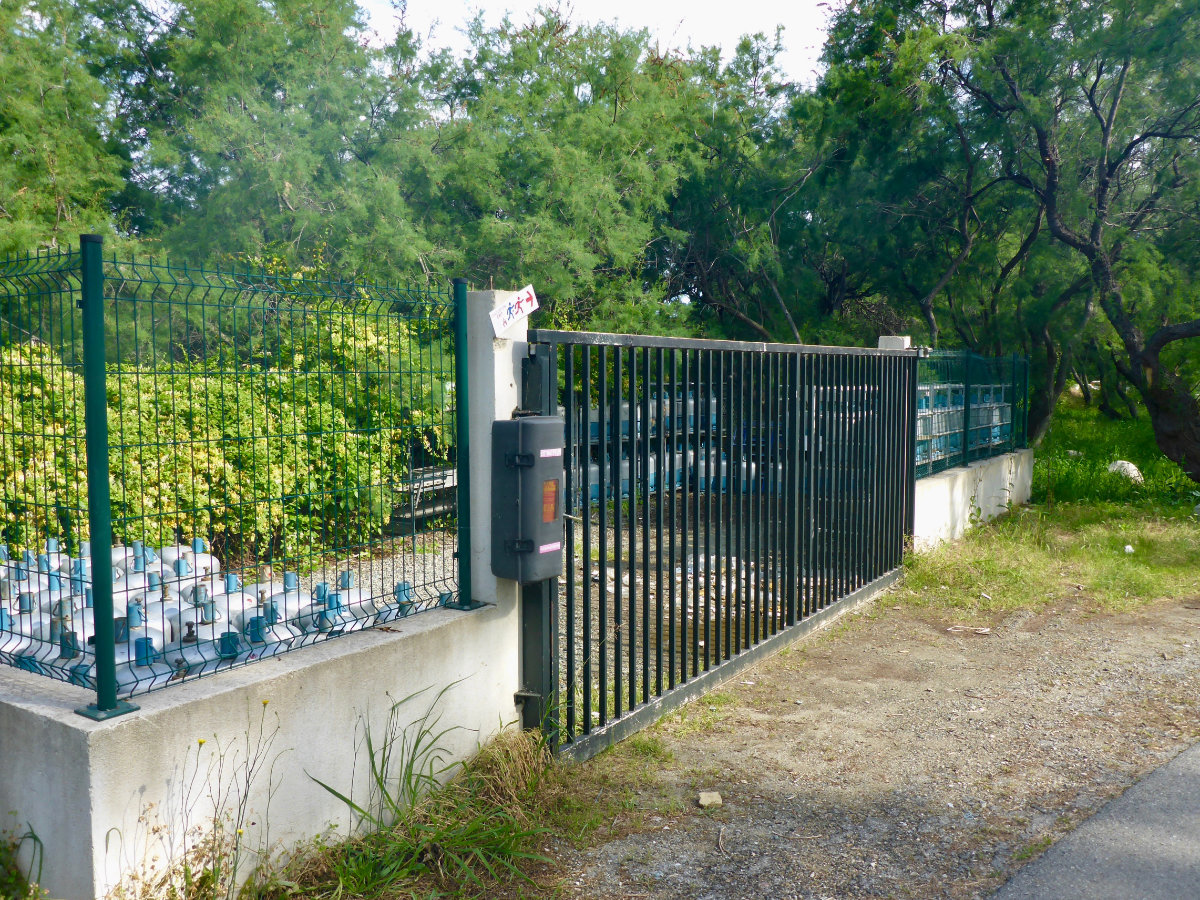 Das hier sah mir nach echtem Optimismus aus: das Gaslager unseres Campingplatzes. Da werden auf der einen Seite die vollen Gasflaschen gestapelt und auf der anderen Seite die leeren. (Anmerkung der Redaktion: Warmwasser und Kochen im Mobilehome funktionieren mit Gas)