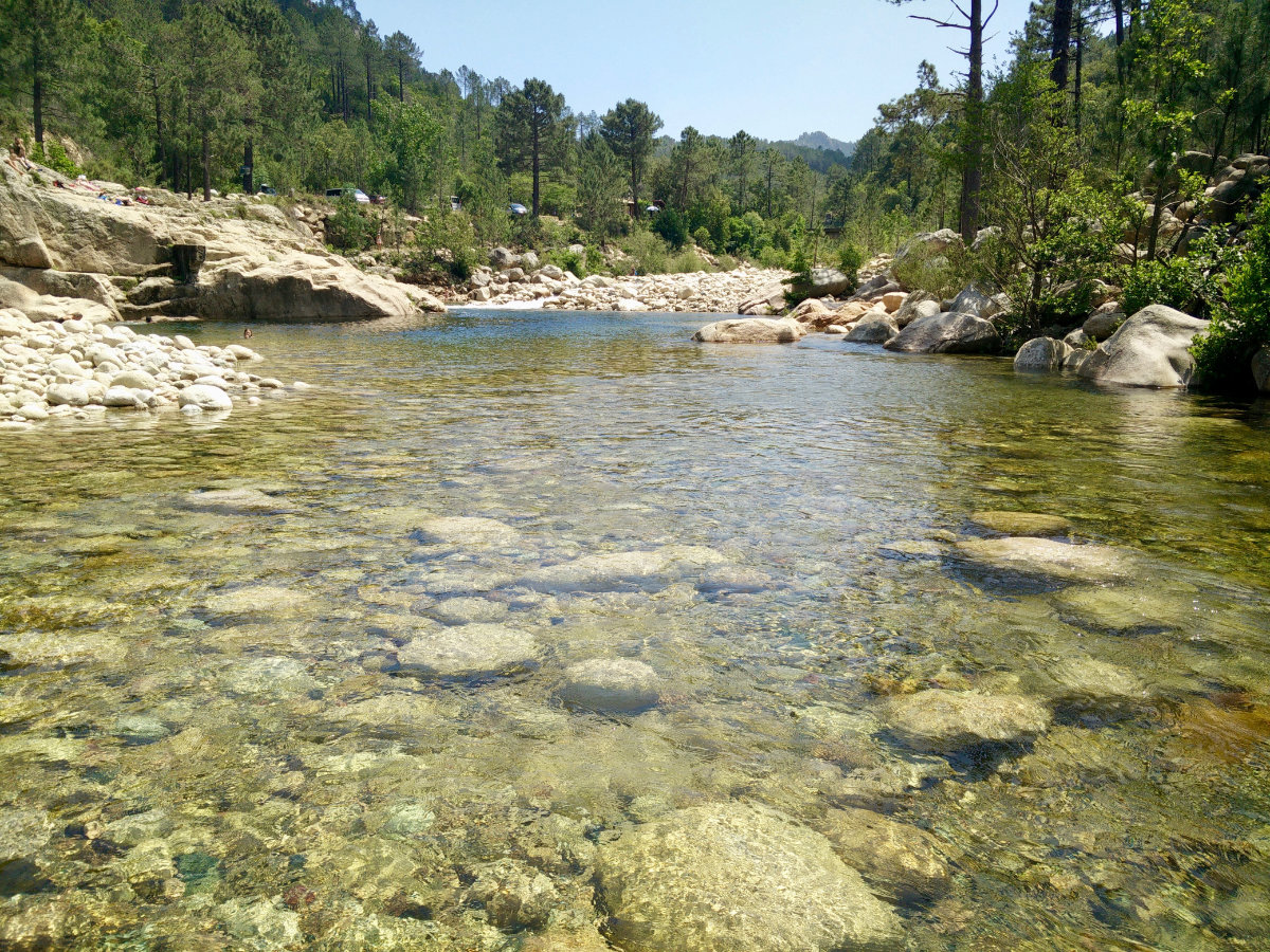 Und weil die Flüsse in Korsika zwangsläufig kurz und steil sind (weil die Insel nicht groß aber hoch ist), ist das Wasser wunderbar klar: