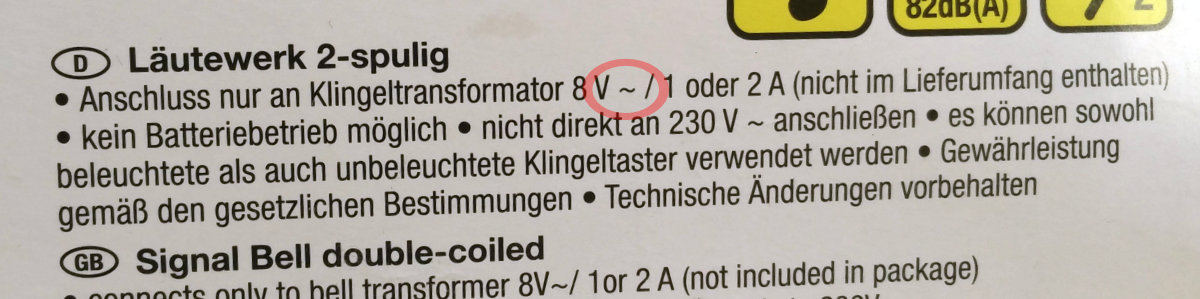 Das Problem bei uns war nun, dass wir nicht immer mitbekommen haben, wenn jemand geläutet hat. Immer, wenn ich die Installation geprüft habe, hat die Glocke ein wunderschönes Dingdong von sich gegeben. Einmal habe ich den Kern erwischt, wie er nicht gezuckt hat. Also ein bisschen Sprühöl dran und weiter ging’s. Trotzdem haben wir immer wieder das Läuten von Kindern und/oder Freunden nicht gehört. Die weitere Ursachenforschung endete schließlich beim Trafo der Klingelinstallation: der hat nämlich hinter der Spannungsangabe eine schicke Welle …