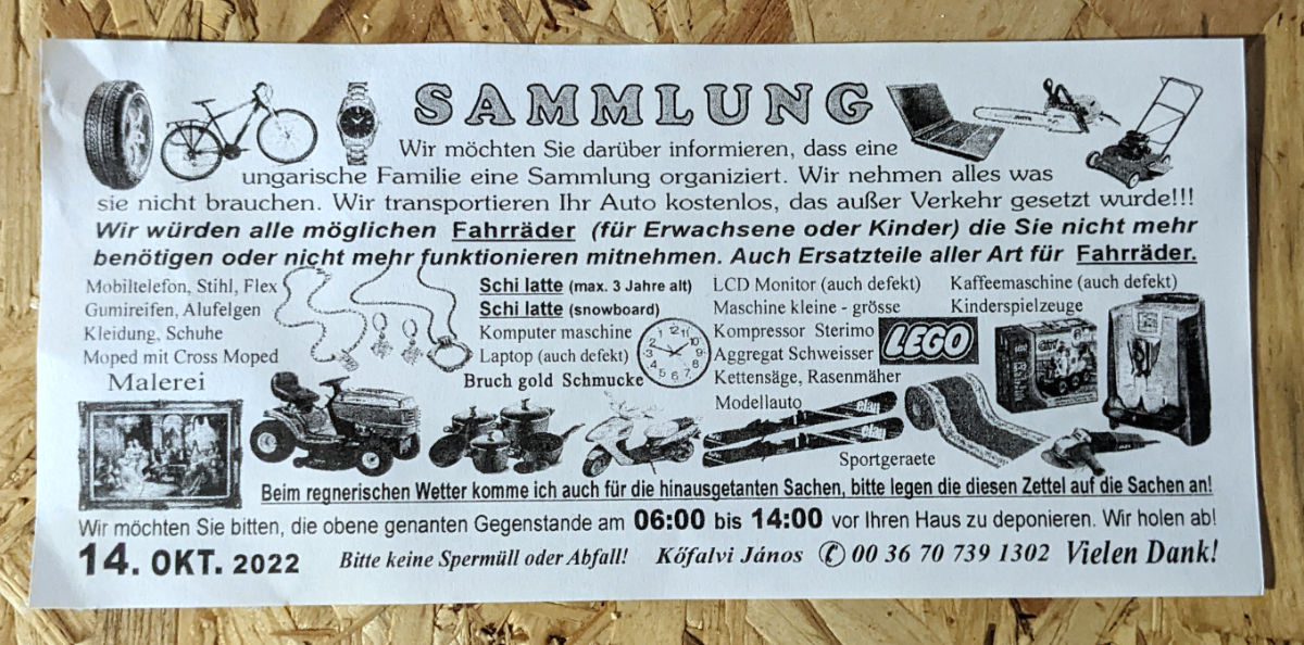 Kreßberg scheint ein lukratives Sammlungsgebiet zu sein, denn es gibt wieder einen neuen Flyer mit listigen Worten … Wie schon neulich.