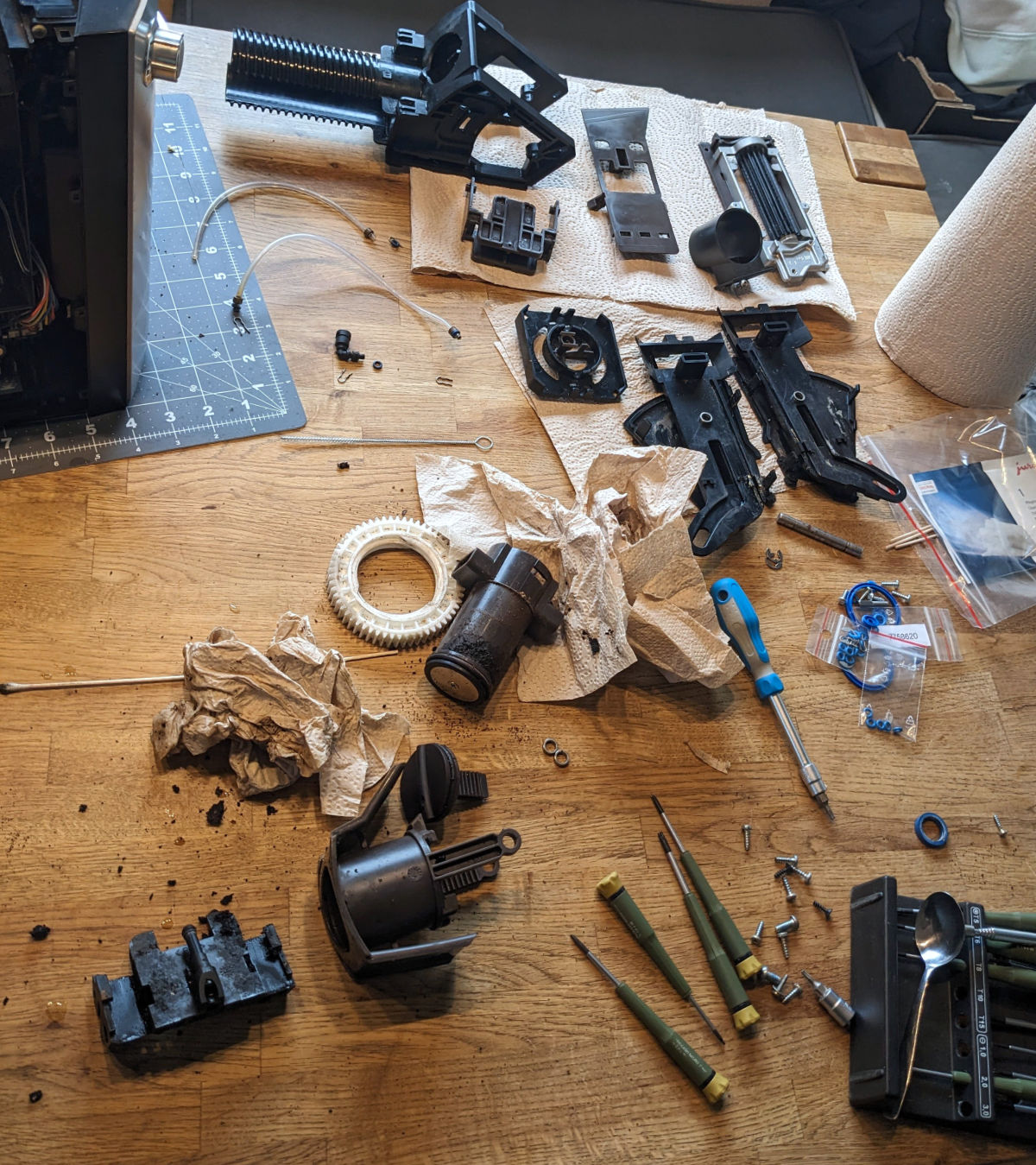 Neulich hat unsere Kaffeemaschine mal wieder nach einem neuen Filter verlangt. Und ich hatte irgendwie den Eindruck, dass sie sich beim Kaffee-Auswringen etwas “gequält” anhört. Da ich sowieso neues Filtergranulat bestellen musste, hab ich mir gleich noch ein “Wartungsset Groß” in den virtuellen Einkaufswagen gepackt. Vor zwei Wochen habe ich mir dann mal einen Nachmittag Zeit genommen, um das Gerät weit genug zu zerlegen, dass ich an die Verschleißteile dran kam.