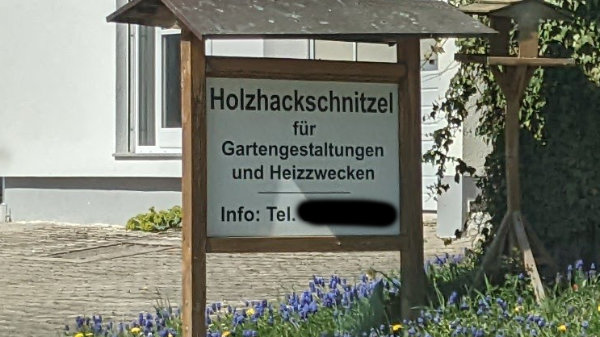 “Holzhackschnitzel für Gartengestaltung und zu Heizzwecken”