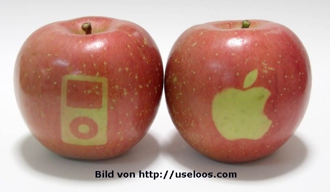 …hatte da offenbar einer aus den Niederlanden. Der hat nämlich seine Äpfel kurz vor der Ernte noch mit netten, lichtdichten Aufklebern beklebt und dann die Sonne dran arbeiten lassen (entnehme ich zumindest der Bildergalerie auf http://useloos.com).