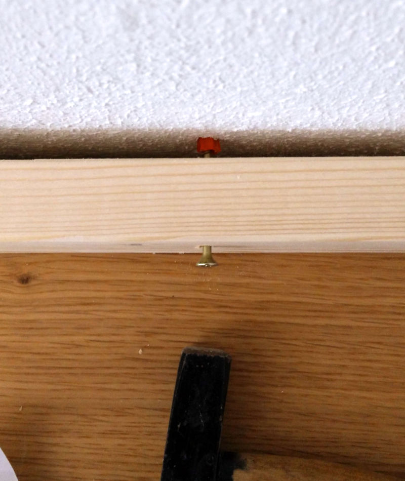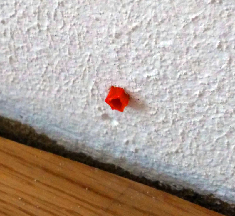 Aber tatsächlich funktioniert dieser Trick hier auch ganz gut (vorausgesetzt, das Loch in der Wand ist tief genug!): Man setze eine Schraube so ein bis drei Umdrehungen weit an. Dann klopfe man auf den Schraubenkopf.