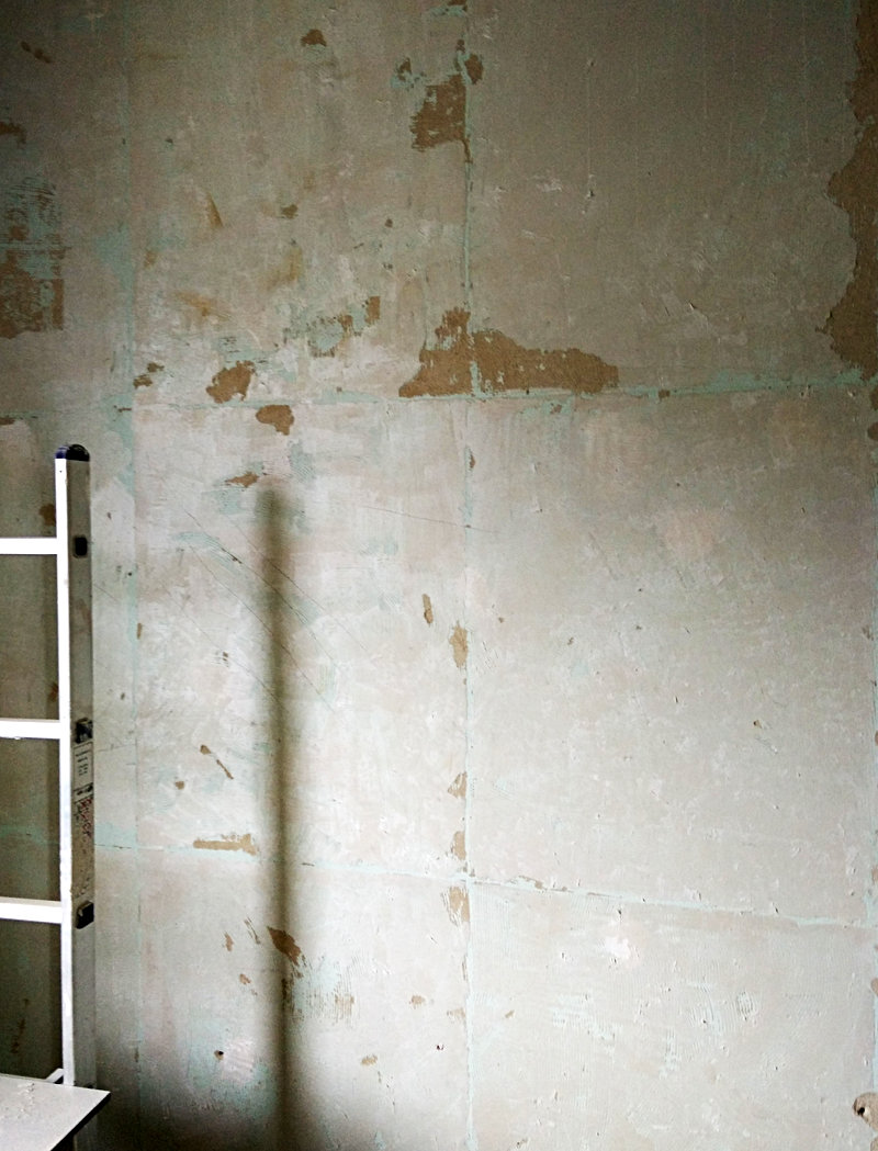 Das Männchen saß also da und lächelte in sich hinein. Und meinte es wahrscheinlich gut, als es unglaublich viel Styroporkleber verwendete und mit 2 Millimeter dünnen Styroporplatten die Wand beklebte. Diese Wärmedämmung sollte dann die Heizkosten in ungeahnte Tiefen sinken lassen. Dabei dachte sich das Männlein vielleicht auch noch: “wenn das mal jemand weg machen will, der muss schon die Wand einreißen”.