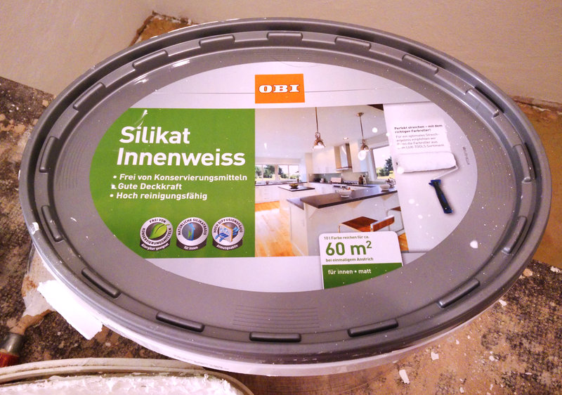 Da wollte ich mich doch vergangenes Wochenende mokieren, dass auf meinem Farbeeimer eine Reichweite von 60qm versprochen wird, ich aber nur anderthalb mal rum gekommen bin. Ich hatte mir dazu auch schon einen schönen Rant vorbereitet, von wegen „Der Baumarkt mit dem Biber ist ja kein Autokonzern, deshalb sollte die Herstellerangabe ja eigentlich stimmen“ und „Innensilikatfarbe zum kostengünstigen Schaffen von Wohnraum“.