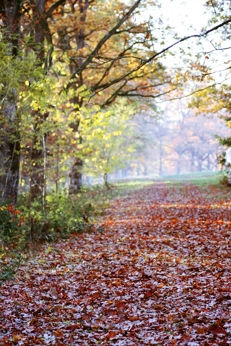 Oder herbstliche Wege, hier mit Eichenlaub bedeckt (sowohl Rot- als auch Weißeiche, siehe auch hier).