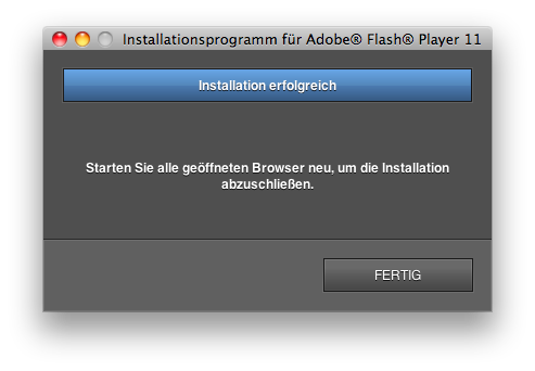Zur Installation von Flash auf dem Mac muss man nach dem Abnicken der Lizenzbestimmungen erstmal alle Programme zu machen, die irgendwie auch nur an Flash denken, also alle Browser, RSS-Reader, und sogar die Systemeinstellungen (in denen man gerade den Knopf zum Version-Prüfen gedrückt hat, weil ja das Autoupdate mal wieder pennt).