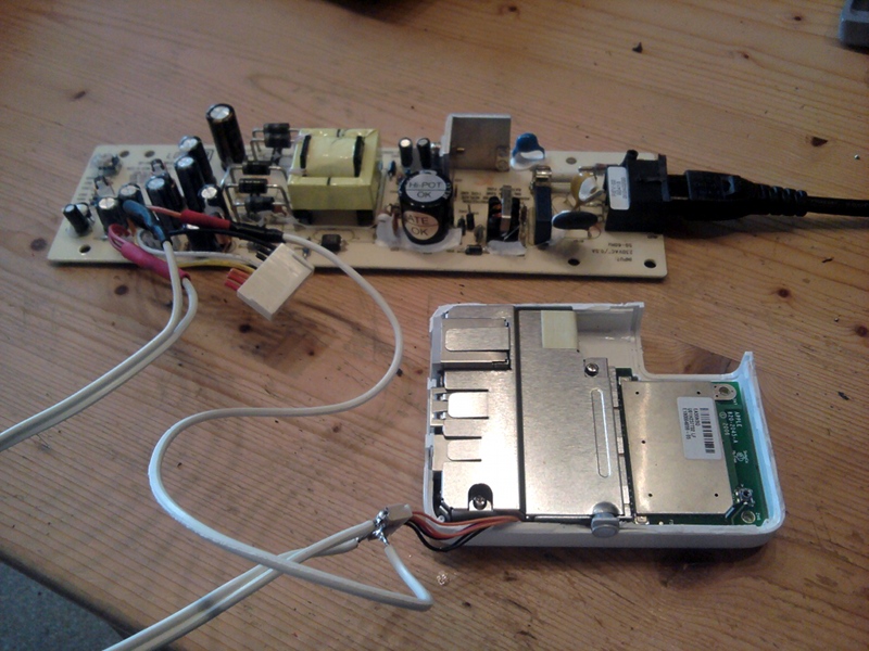 Nun tüdelt man die beiden Dinger zusammen; dabei unbedingt auf die Beschriftung am Netzteil achten. bei meinem waren die 5V nämlich orange und die 3.3V rot — grad andersrum wie beim Airport Express.