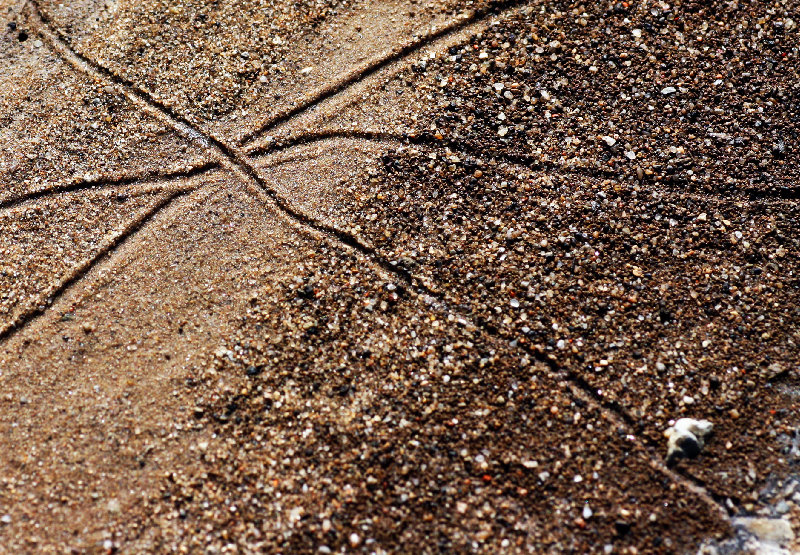 Diese Kreuzung haben wohl drei Regenwürmer nacheinander passiert und ihre Spuren hinterlassen.