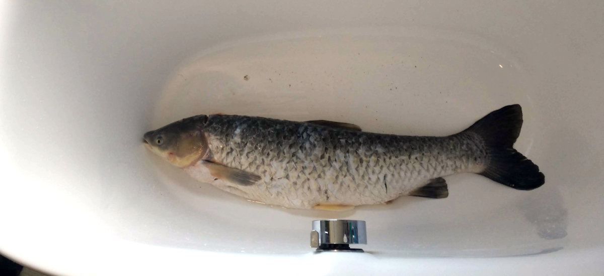 Und das Kind bringt einen Nahezu-1m-Karpfen mit heim.